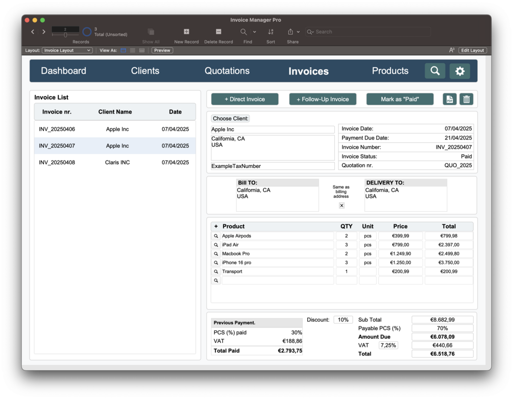 Invoice Manager - FileMaker Pro (vEU, ccy €)